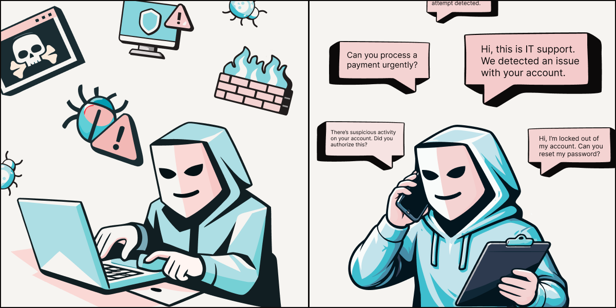 For years, hacking and social engineering existed as roughly equal threats. Criminals used both. Now, the balance has shifted significantly.